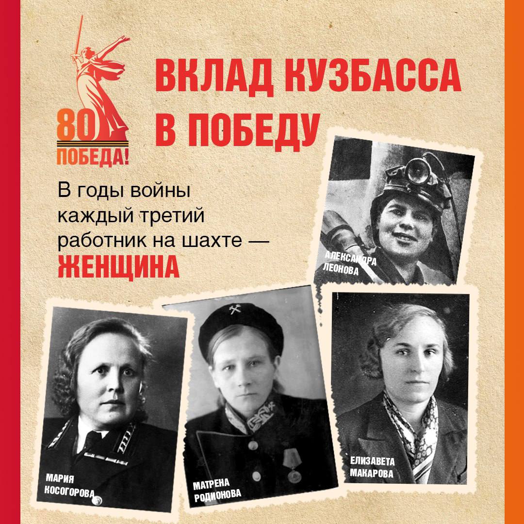 Так, Елизавета Макарова встретила войну в должности заведующей шахтой «Полысаевская», шахта «Зиминка» под руководством Марии Косогоровой в 1942 году стала лучшей в СССР. Матрена Родионова с шахты имени Орджоникидзе — первая женщина в Кузбассе, удостоенная звания «Почетный шахтер». Александра Леонова с шахты «Коксовая-1» имени Сталина стала первой женщиной-забойщицей региона, её фото появилось на обложке журнала «Работница» в июле 1942 года.