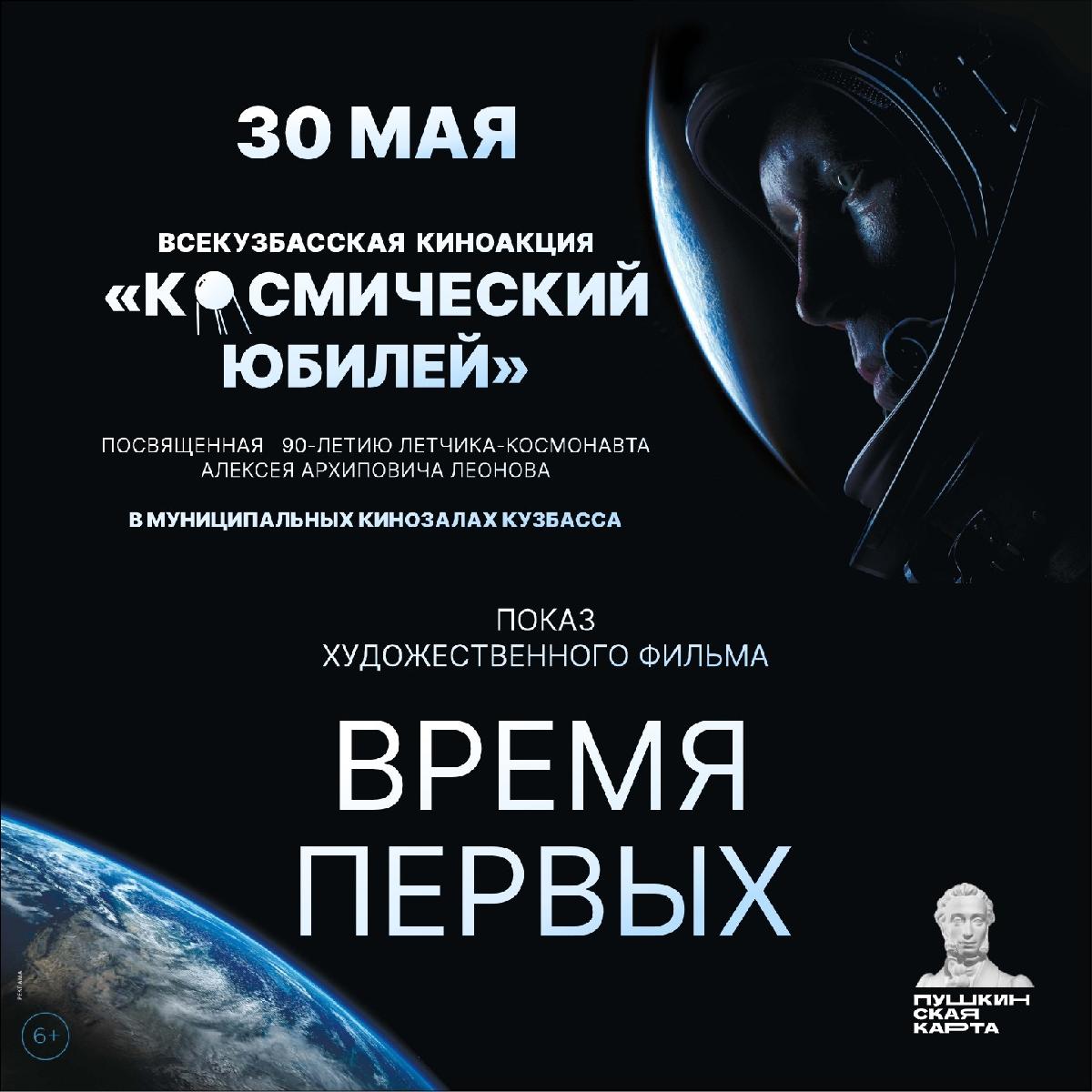 30 мая, в день 90-летия со дня рождения дважды Героя Советского Союза, лётчика-космонавта СССР Алексея Архиповича Леонова, в муниципальных кинозалах Кузбасса пройдет Всекузбасская киноакция «Космический юбилей» с показом фильма «Время первых».