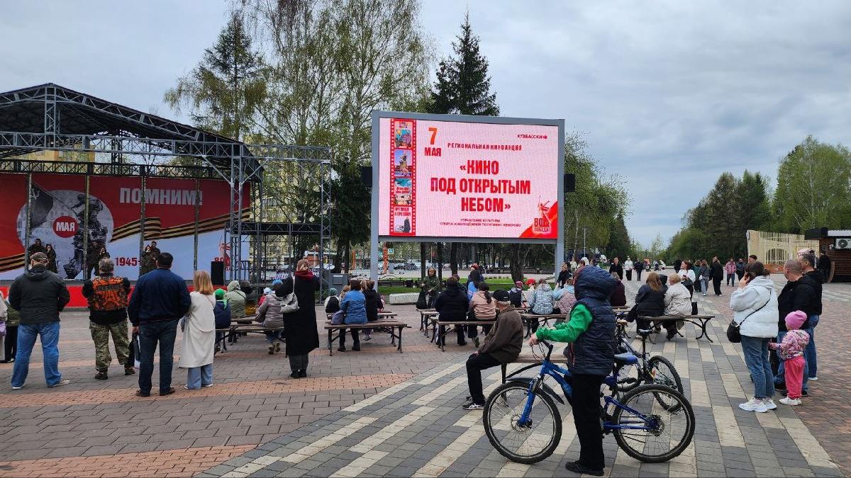 Кемерово, Мариинск, Киселевск, Гурьевск, Новокузнецк, Осинники присоединились к региональной акции «Кино под открытым небом», посвященной 80-летию Победы.