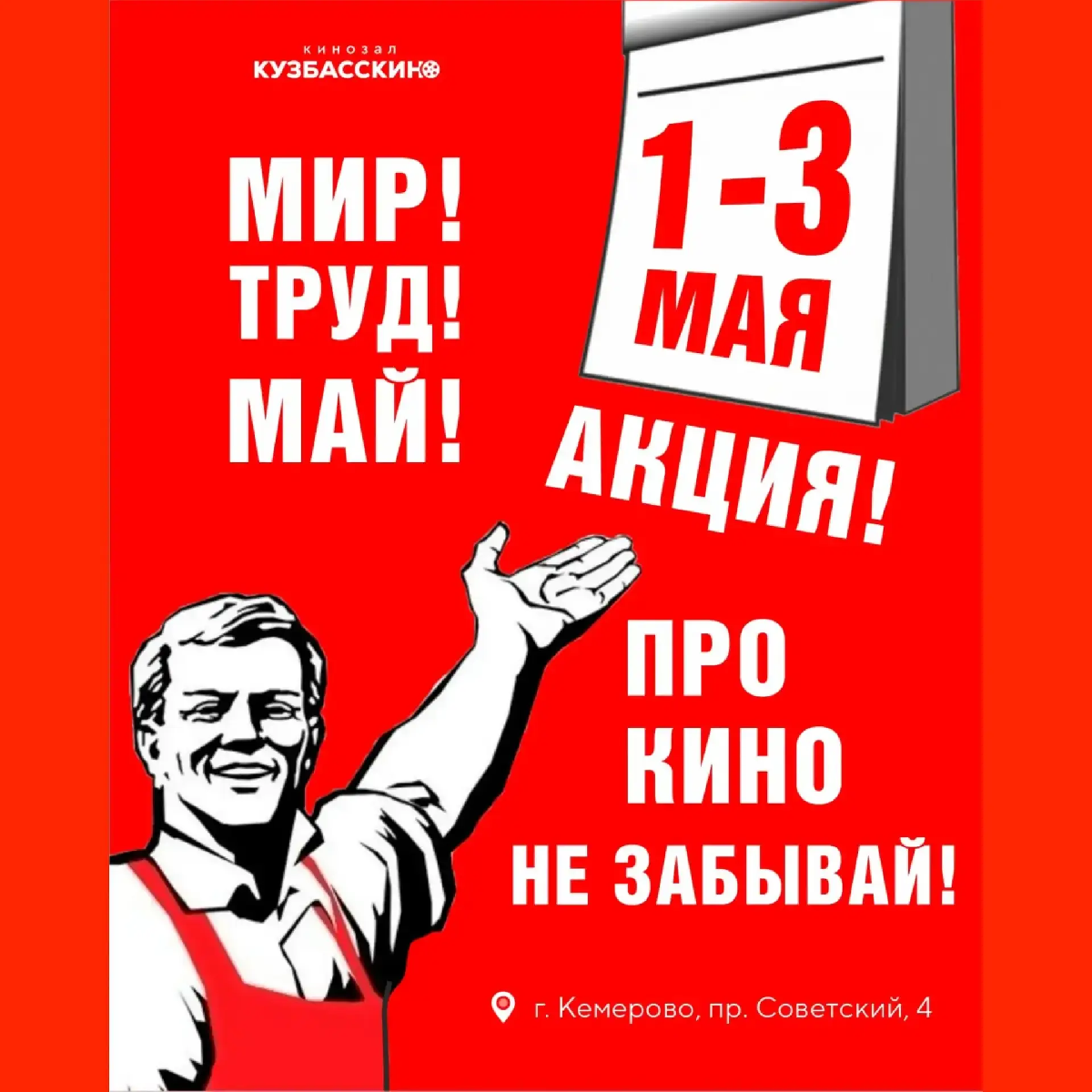 Приглашаем кемеровчан и гостей города 1-3 мая в кинозалы Кузбасскино на фильмы по льготной цене.