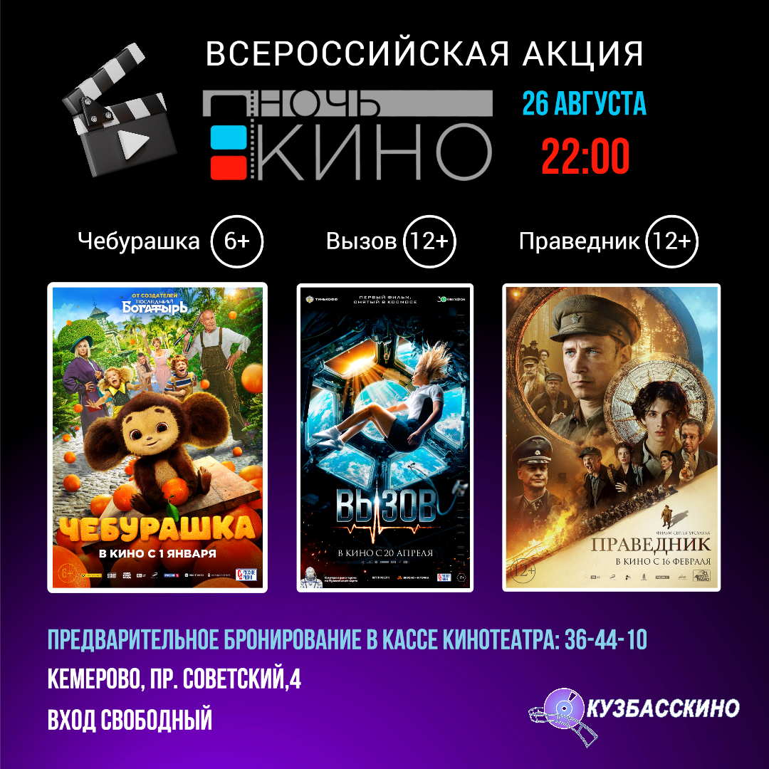 26 августа, в 22:00, в Летнем кинотеатре под открытым небом, состоится восьмая Всероссийская акция «Ночь Кино», ставшая ежегодным кинособытием.