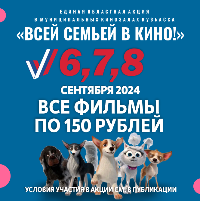 Дорогие зрители! 6,7,8 сентября приглашаем вас в кинозалы Кузбасскино!