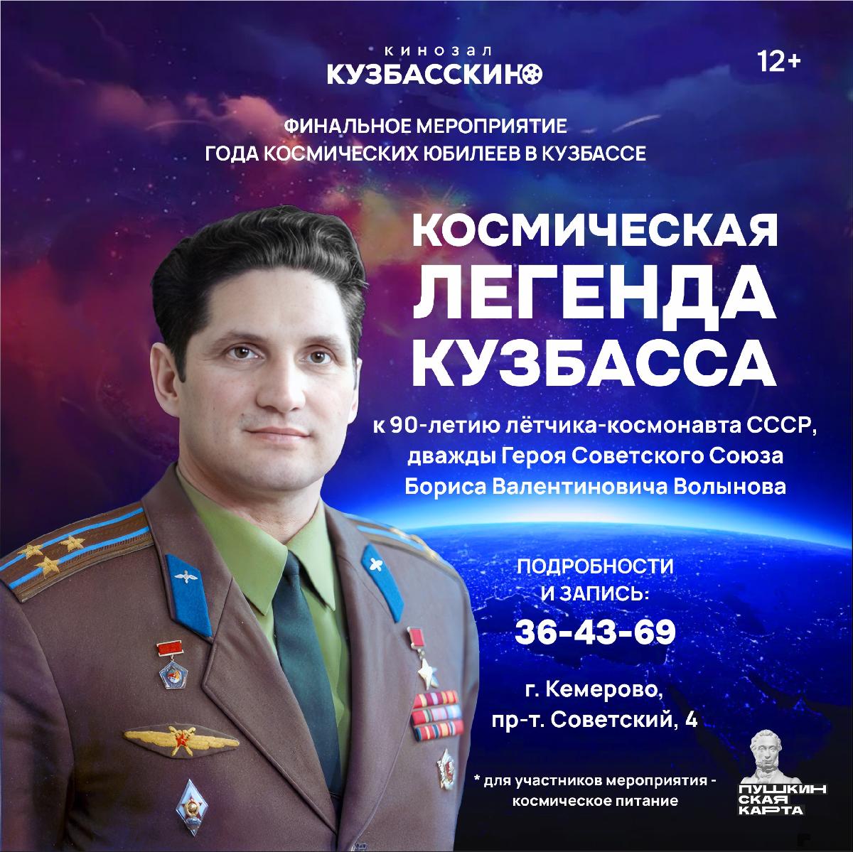 С 5 по 20 декабря сотрудники «Кузбасскино», в рамках года космических юбилеев, проведут киноурок, приуроченный к 90-летию Бориса Валентиновича Волынова.