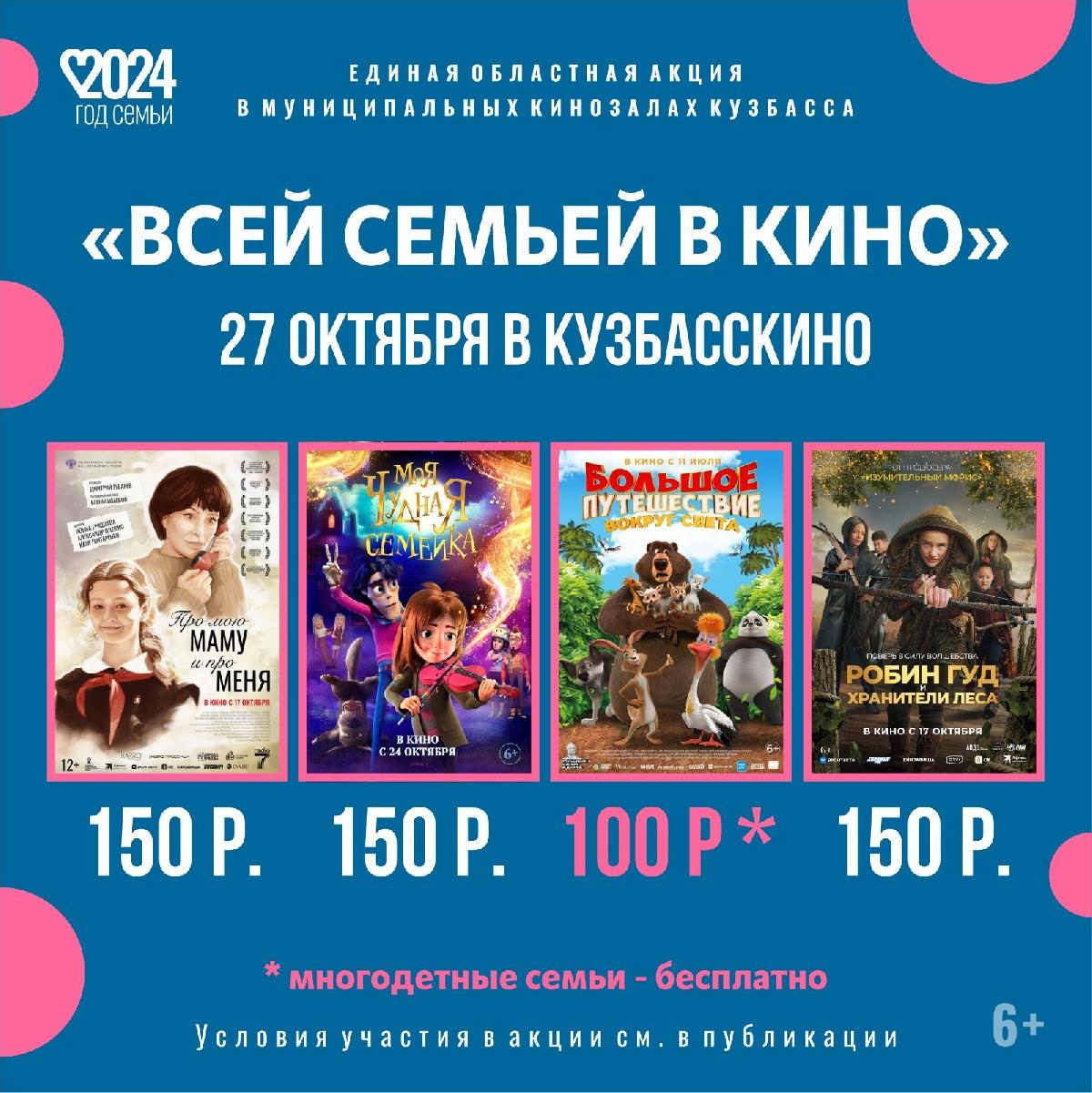 Семейные кинопоказы по специальной цене в Кузбасскино 27 октября!